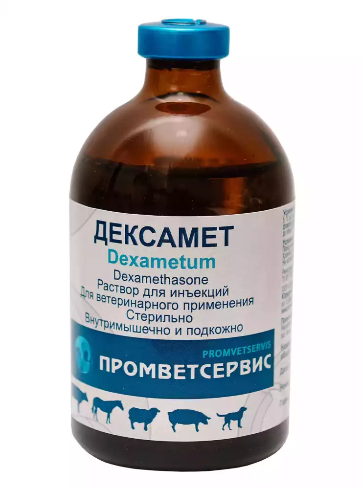 3.1 Дексамет применяют при артритах, периартритах, тендовагинитах, бурситах, вывихах, миозитах, ушибах; острых инфекционных заболеваниях (в дополнение к средствам этиотропной терапии); аллергических состояниях (астма, аллергические поражения кожи, ламиниты у лошадей и крупного рогатого скота, укусы змей); синдроме ММА у свиней; нарушениях обмена веществ (ацетонемия (кетоз у крупного рогатого скота) и токсемия беременных (овцы)); индукции родов у жвачных в последние сроки беременности; шоковых и стрессовых состояниях (коллапс, анафилаксия, травма) и других патологиях.